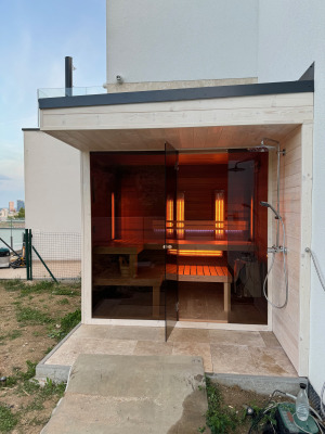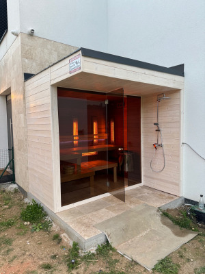 Exteriérová kombinovaná sauna so sprchou